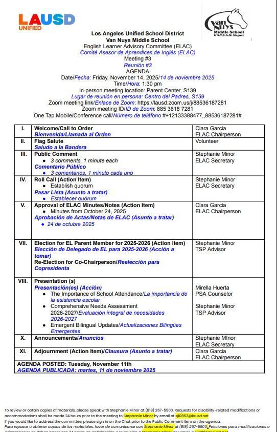 ELAC Meeting #3 -- The Importance of School Attendance ELAC #3 Agenda Published November 11, 2025 Print